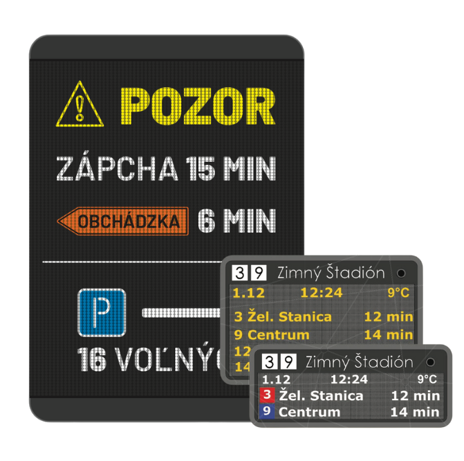 Versatile digital panels designed for traffic management and public transport stops, displaying real-time information based on current settings or live data. They support dynamic content, help manage mobility, and improve communication with citizens.
